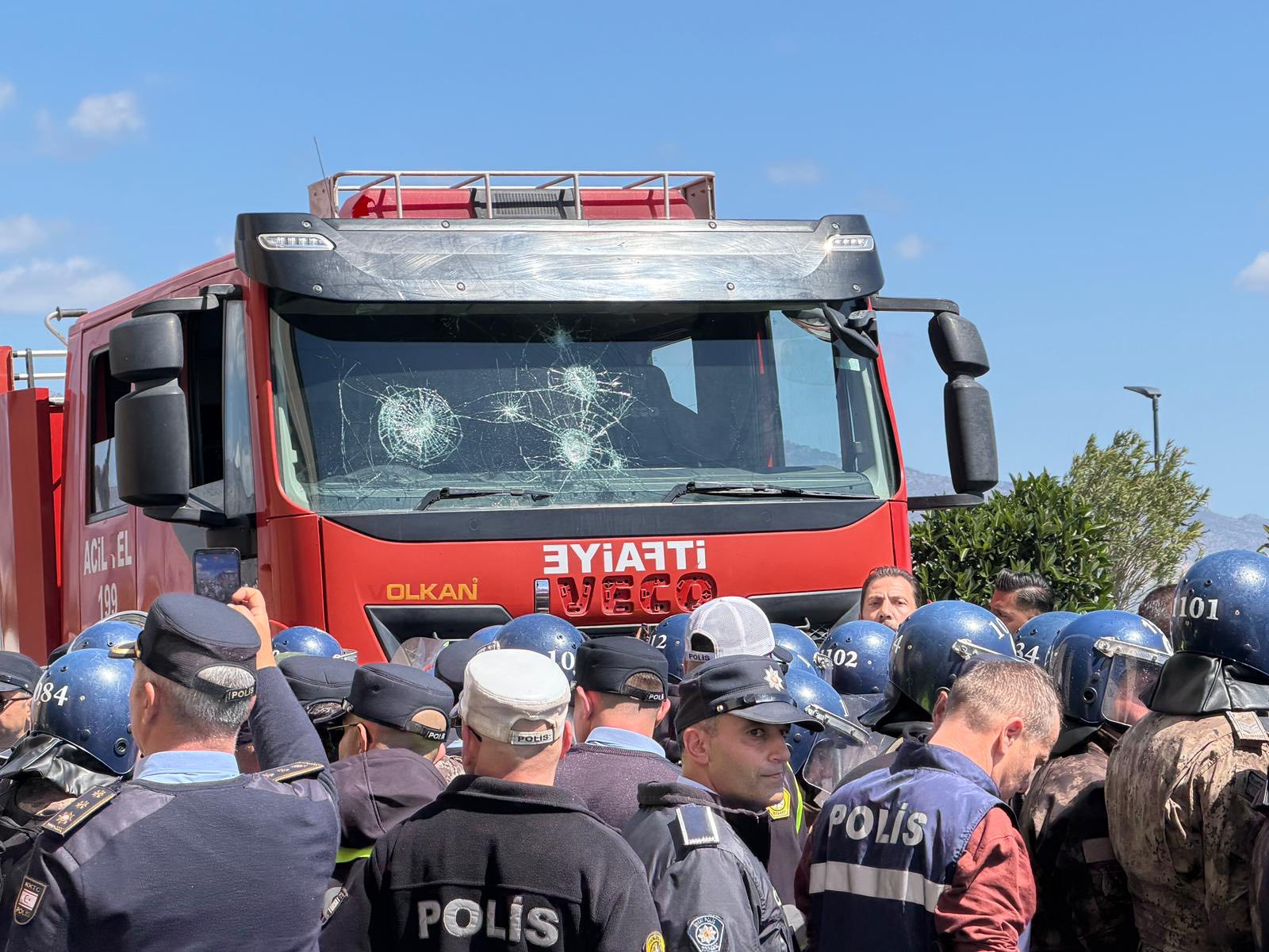 Στις 11:50, πυροσβεστικό όχημα μεταφέρθηκε στον χώρο της διαμαρτυρίας έξω από τη «βουλή» και προωθήθηκε προς τους συγκεντρωμένους, σε μια προσπάθεια ενίσχυσης των μέτρων καταστολής.