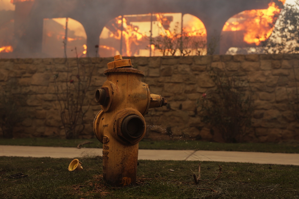 Οι αρχές κάλεσαν τους πολίτες να κάνουν οικονομία στο νερό, καθώς τρεις δεξαμενές που τροφοδοτούν τους πυροσβέστες άδειασαν λόγω των προσπαθειών να ελεγχθεί η φωτιά στη συνοικία Πασίφικ Παλισέιντς.