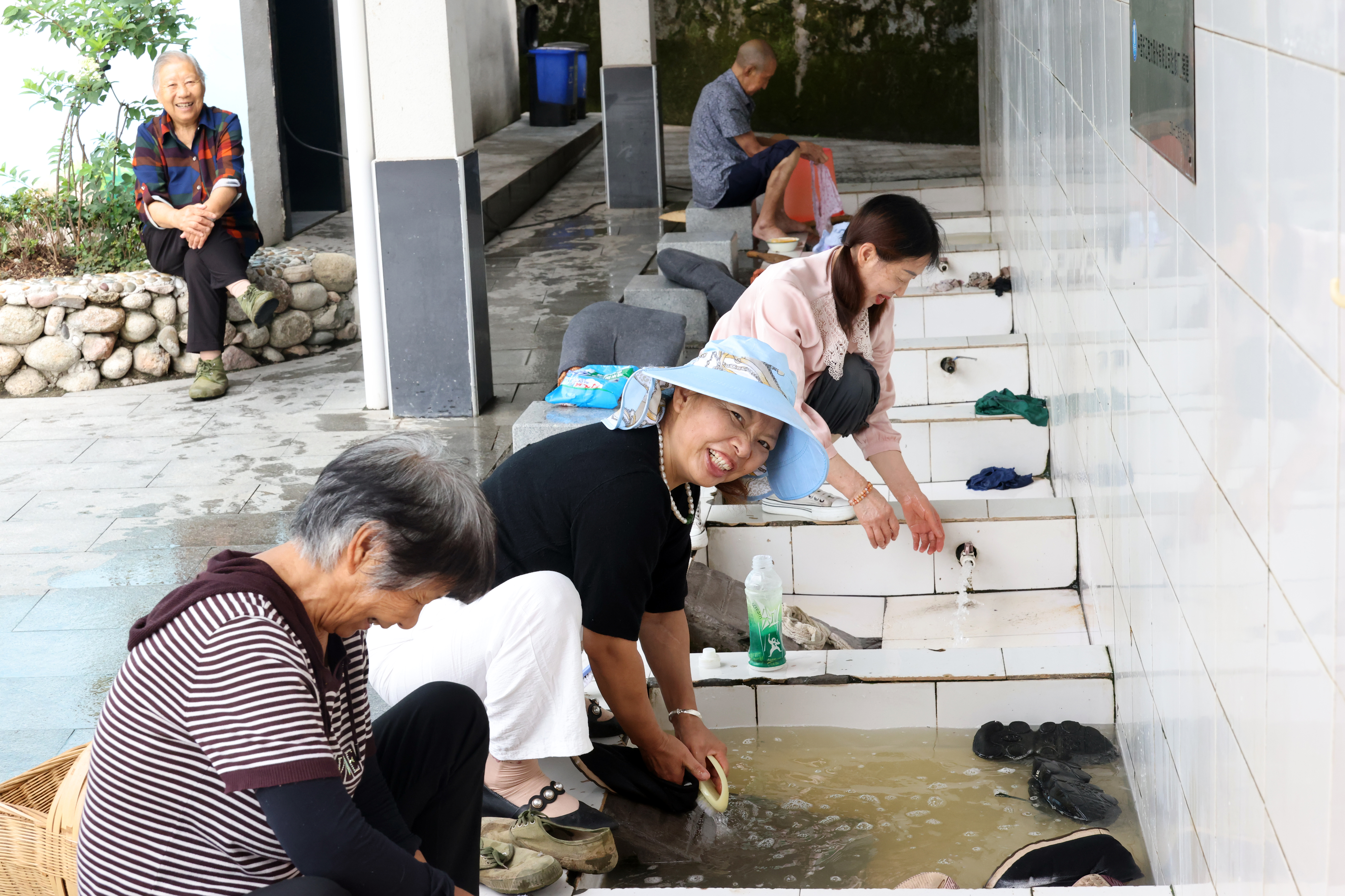 Πληθυσμός πέραν του ενός εκατομμυρίου μετακινήθηκε για τον σκοπό της κατασκευής του φράγματος. Εγκαταλείφθηκαν χωριά τα οποία εξαφανίστηκαν από τον χάρτη λόγω της αλλαγής στη ροή του νερού και του καταποντισμού της περιοχής. Ωστόσο, δημιουργήθηκαν νέοι οικισμοί με σύγχρονες υποδομές σε μεγαλύτερο ύψος και καταβάλλονται μεγάλες και συνεχείς προσπάθειες ώστε οι πληθυσμοί που μετακινήθηκαν να ζουν ευτυχισμένα. Ένα τέτοιο παράδειγμα το χωριό Xujiachong που κτίστηκε για να στεγάσει μέρος του πληθυσμού που μετακινήθηκε στα πλαίσια της κατασκευής του φράγματος. Οι κάτοικοι ζήτησαν και εξασφάλισαν ειδικούς δημόσιους χώρους για το πλύσιμο ρούχων στο χέρι, δίπλα ο ένας στον άλλο, όπως έκαναν τον καιρό που ζούσαν σε χωριά στις όχθες του ποταμού. Είναι ένας τρόπος κοινωνικοποίησης. Συναθροίζονται, συζητούν και γελάνε με τα αστεία των συγχωριανών τους την ώρα που πλένουν τα ρούχα με τον παραδοσιακό τρόπο.