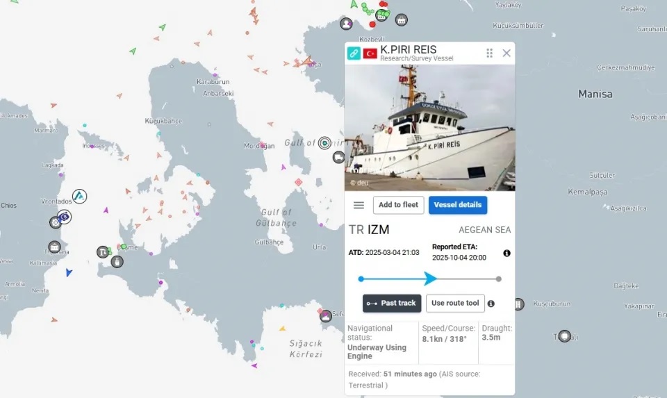 Το τουρκικό ωκεανογραφικό σκάφος «Πίρι Ρέις» να απέπλευσε από το λιμάνι της Σμύρνης με προορισμό προς το Αιγαίο προκειμένου να διεξάγει έρευνες βάσει NAVTEX, δεσμεύοντας περιοχές που βρίσκονται σε ελληνική υφαλοκρηπίδα.
