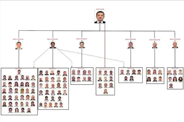 Στη δημοσιότητα δόθηκε από την τουρκική δικαιοσύνη η δομή της «εγκληματικής οργάνωσης Ιμάμογλου», την ώρα που ο εισαγγελέας ζητά ποινή φυλάκισης 2.352 ετών για τον πρώην δήμαρχο Κωνσταντινούπολης.