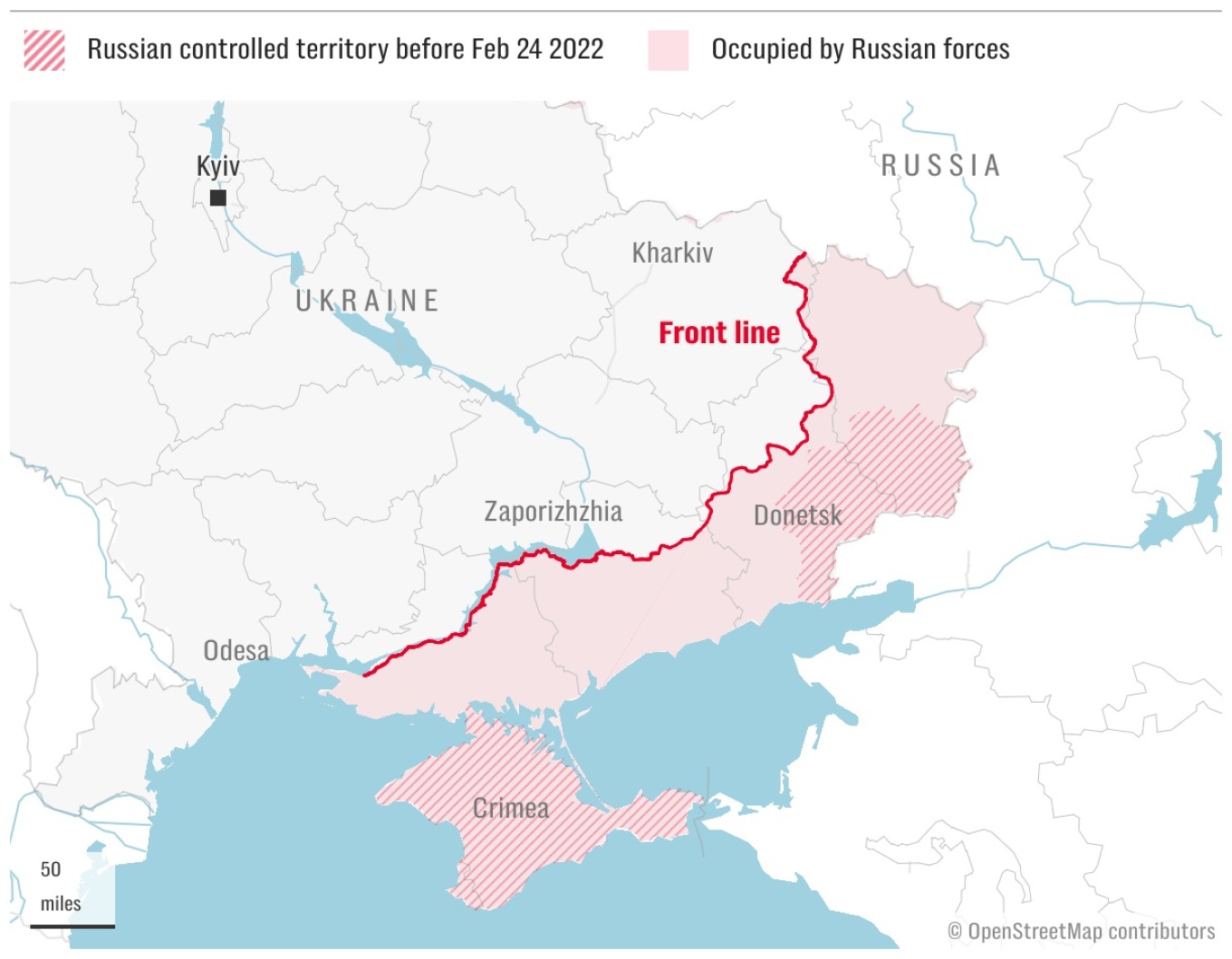 Ο χάρτης με τα ουκρανικά εδάφη που έχει καταλάβει παράνομα η Ρωσία