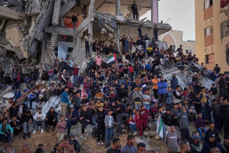 Στα ερείπια της νότιας πόλης Χαμάντ, στην Χαν Γιουνίς, περισσότερα από 50 νεαρά ζευγάρια ένωσαν τις ζωές τους, οι νύφες με παραδοσιακές λευκές και κόκκινες φορεσιές και οι γαμπροί με ίδια κοστούμια.