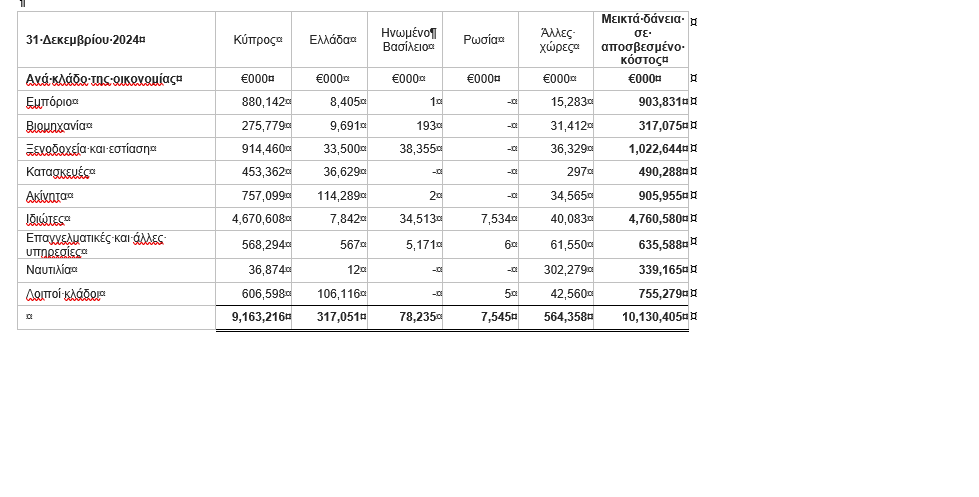 Σημειώνεται ότι το Συγκρότημα συνέχισε να παρέχει ποιοτικό νέο δανεισμό κατά το εννεάμηνο που έληξε στις 30 Σεπτεμβρίου 2025 μέσω συνετών πρακτικών. Σύμφωνα με την τράπεζα, ο νέος δανεισμός στη Κύπρο επικεντρώνεται σε επιλεγμένους κλάδους της οικονομίας οι οποίοι είναι συμβατοί με το προφίλ κινδύνου της Τράπεζας.