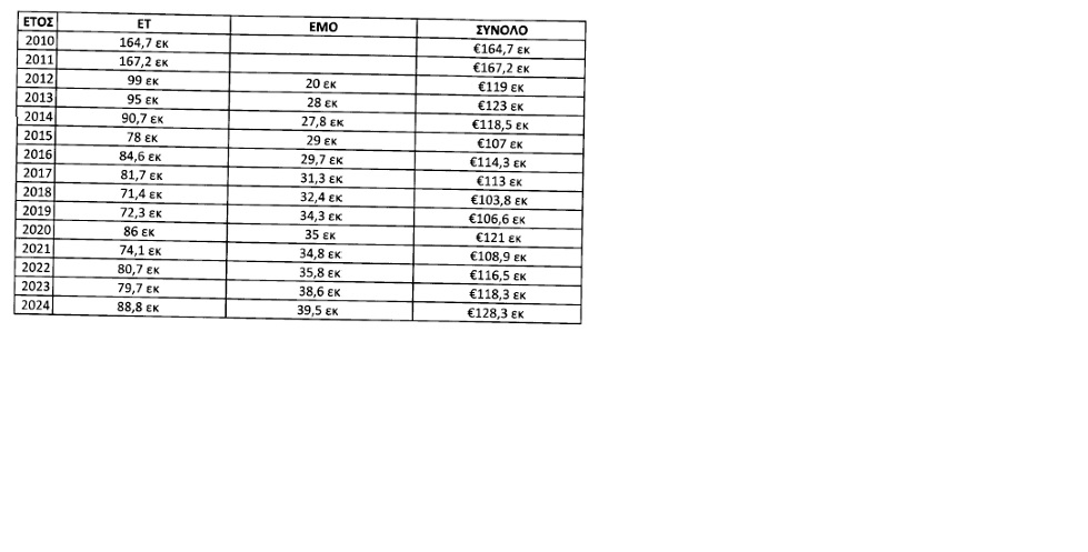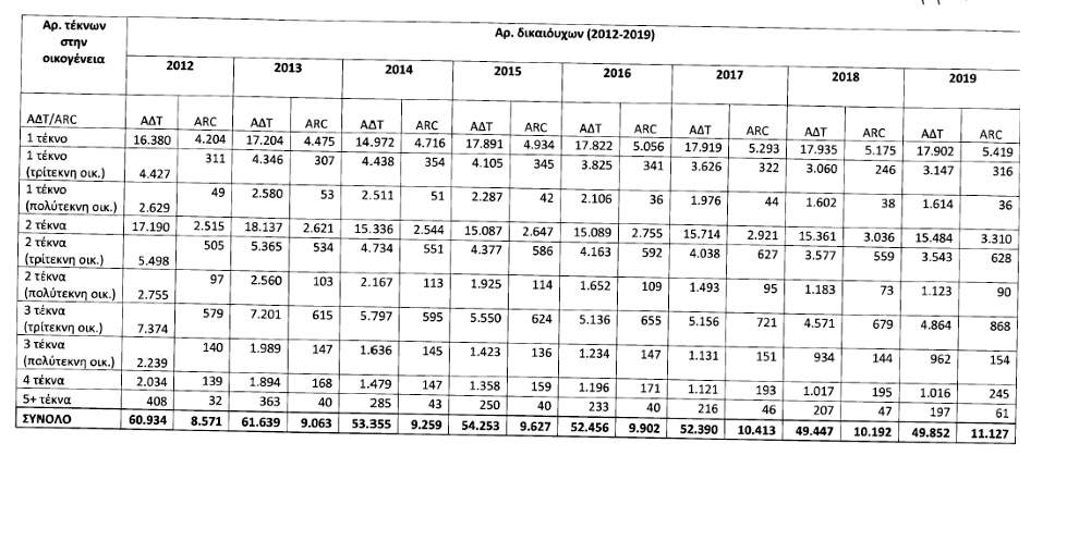Παράλληλα, δίνονται στοιχεία για το συνολικό ποσό που διατέθηκε για την παροχή του Επιδόματος Τέκνου (ΕΤ) και του Επιδόματος Μονογονεϊκής Οικογένειας (ΕΜΟ) ανά έτος.