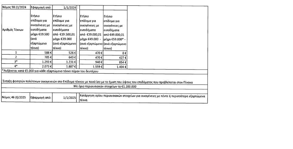 Σημειώνεται ότι από την 1.1.2025 καταργήθηκε το όριο περιουσιακών στοιχεων για οικογένειες με πέντε ή περισσότερα εξαρτώμενα τέκνα.