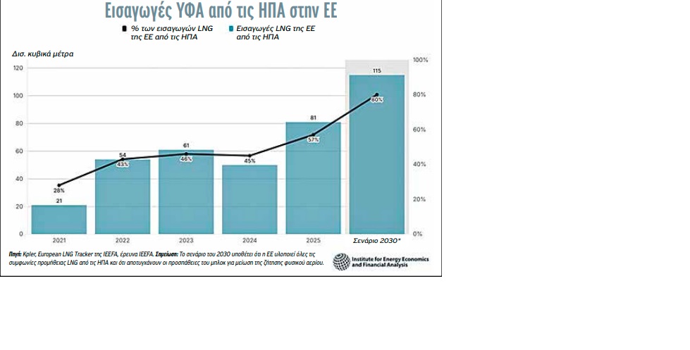 Η ΕΕ είναι ήδη ο μεγαλύτερος αγοραστής αμερικανικού ΥΦΑ, έχοντας απορροφήσει πάνω από το 50% των εξαγωγών αμερικανικού ΥΦΑ το 2025. Πρόκειται για μια υπερβολική εξάρτηση που, δεδομένης της δυσλειτουργίας των πολιτικών σχέσεων μεταξύ ΕΕ και ΗΠΑ υπό την προεδρία του Τραμπ, θέτει σε κίνδυνο τη μελλοντική ασφάλεια του εφοδιασμού. Επίσης, έρχεται σε αντίθεση με τα σχέδια της ΕΕ για ενίσχυση της ενεργειακής ασφάλειας μέσω της μεγαλύτερης αποκεντρώσεώς της. Στην πραγματικότητα, η ΕΕ βρίσκεται αντιμέτωπη με τον αυξανόμενο κίνδυνο να αντικαταστήσει μια κυρίαρχη εξάρτηση από τις εισαγωγές φυσικού αερίου, τη Ρωσία, με μια άλλη, τις ΗΠΑ.