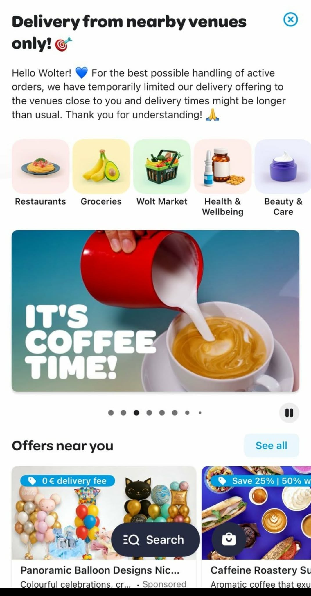 Παράλληλα, σήμερα, η πλατφόρμα εμφανίζει μηνύματα προς τους χρήστες ότι έχουν την δυνατότητα να παραγγείλουν μόνο από κοντινά καταστήματα ή ότι οι χρόνοι παράδοσης είναι ιδιαίτερα αυξημένοι.