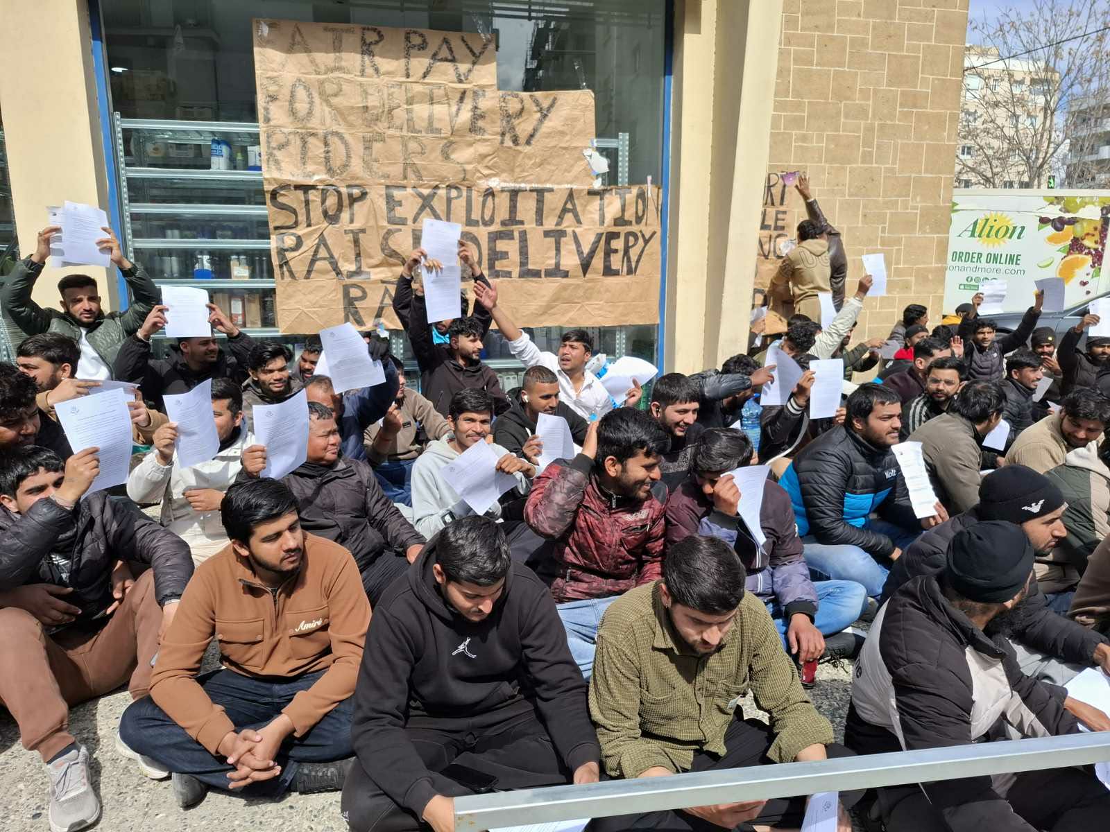 «Τα δίκαια αιτήματά τους για σταθερή εργασία, αυξήσεις στους μισθούς, μέτρα υγείας και ασφάλειας, αλλά και να μπει τέλος στην εκμετάλλευση των διανομέων από την εταιρεία αλλά και τους εργολάβους τους εκεί, είναι όλα αυτά για τα οποία παλεύουμε και εμείς εδώ στην Ελλάδα.