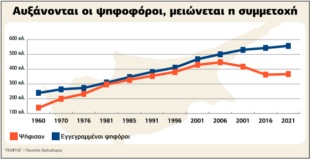 Η συζήτηση ενόψει των βουλευτικών εκλογών του Μαΐου στρέφεται στην απογοήτευση απέναντι στους θεσμούς και τα κόμματα και στην έλλειψη εμπιστοσύνης για να εξηγηθεί η αυξημένη αποχή. Είναι όμως αυτή όλη η αλήθεια; Ο «Π» ανέλυσε τους αριθμούς όλων των βουλευτικών αναμετρήσεων της Κυπριακής Δημοκρατίας καθώς πλησιάζουμε τη 13η βουλευτική αναμέτρηση. Οι αριθμοί λένε πάντα τη δίκη τους αλήθεια στην ιστορία και βοηθούν στην εξαγωγή συμπερασμάτων ή έστω εύλογων παρατηρήσεων.