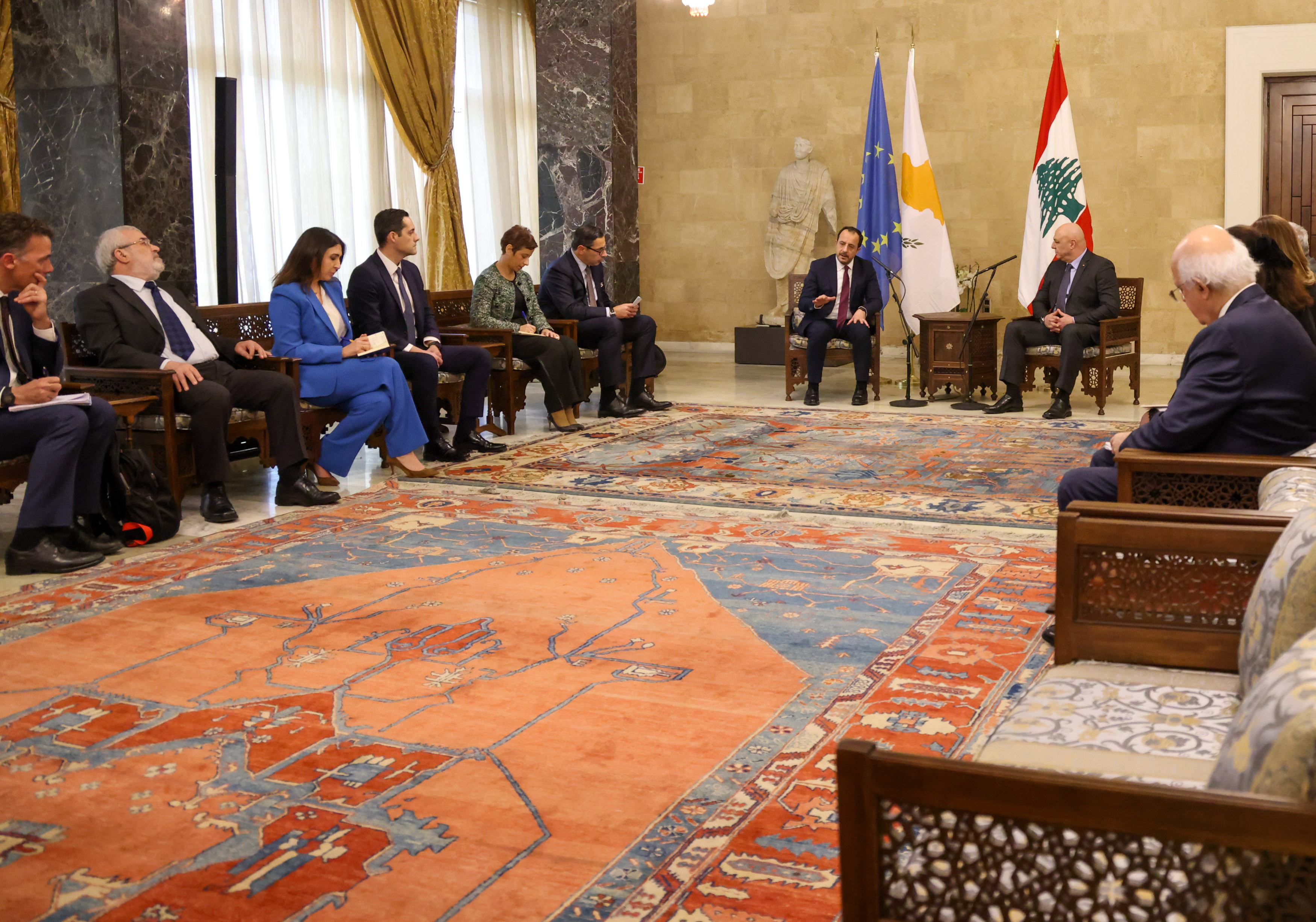 Ο Πρόεδρος της Κυπριακής Δημοκρατίας εξέφρασε τη σταθερή υποστήριξη της Κύπρου στις προσπάθειες του Λιβάνου για την ενίσχυση της σταθερότητας και της οικονομικής ανάκαμψης της χώρας, ενώ ο Πρόεδρος του Λιβάνου εξέφρασε ευγνωμοσύνη για τη συνεχή συμπαράσταση της Κυπριακής Δημοκρατίας. Παράλληλα, σημείωσε τη βούλησή του για περαιτέρω ενίσχυση της συνεργασίας σε όλα τα επίπεδα, αξιοποιώντας και τις δυνατότητες που προσφέρει η συμμετοχή της Κύπρου στην Ευρωπαϊκή Ένωση.