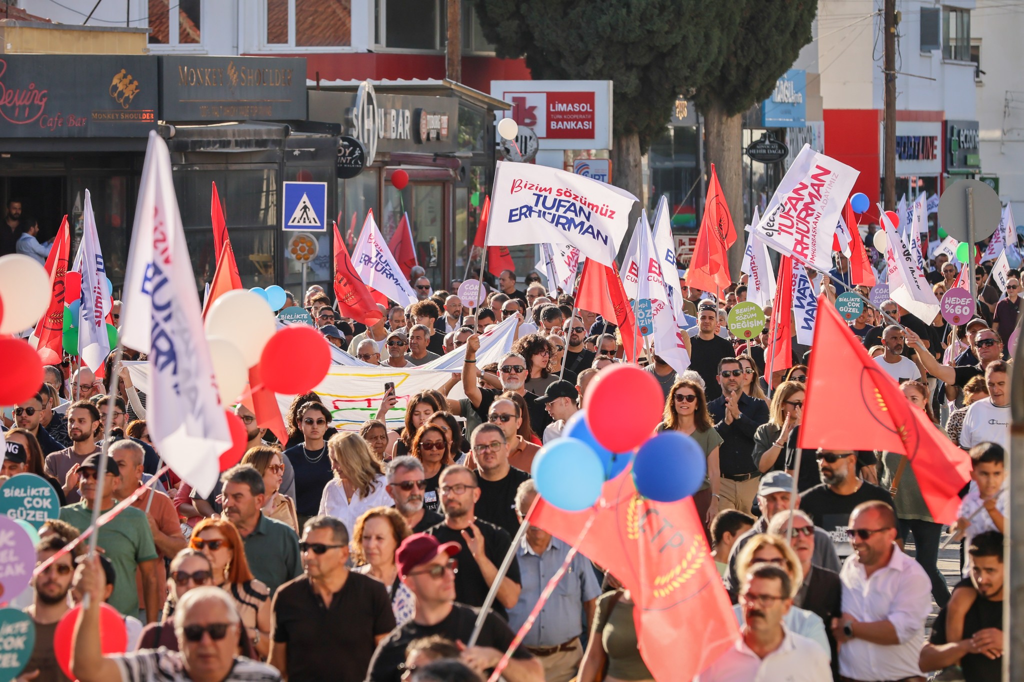 Η πορεία «Πορευόμενοι σε μια Νέα Εποχή», που διοργανώθηκε για τον υποψήφιο πρόεδρο Τουφάν Έρχιουρμαν, πραγματοποιήθηκε σήμερα στην κατεχόμενη Λευκωσία, με χιλιάδες συμμετέχοντες. Άτομα από όλα τα κοινωνικά στρώματα, από εκπαιδευτικούς και εργάτες μέχρι καταστηματάρχες και νέους, έδωσαν χρώμα στην πορεία με τις σημαίες και τα χειροκροτήματά τους. Οι συμμετέχοντες πορεύτηκαν με ελπίδα και αποφασιστικότητα προς τη νέα εποχή, φωνάζοντας το σύνθημα «Περπατάμε μαζί, κερδίζουμε μαζί».