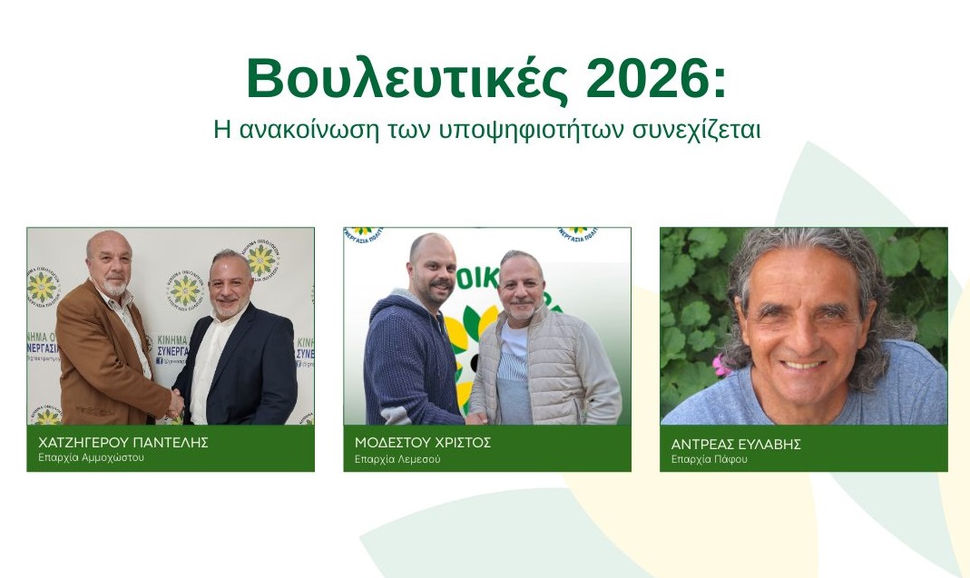 Σύμφωνα με την ανακοίνωση του Κινήματος, στην επαρχία Λεμεσού, υποψήφιος κατέρχεται ο Χρίστος Μοδέστου, ο Ανδρέας Ευλαβής στην επαρχία Πάφου και ο Παντελής Χατζηγέρου στην επαρχία Αμμοχώστου.