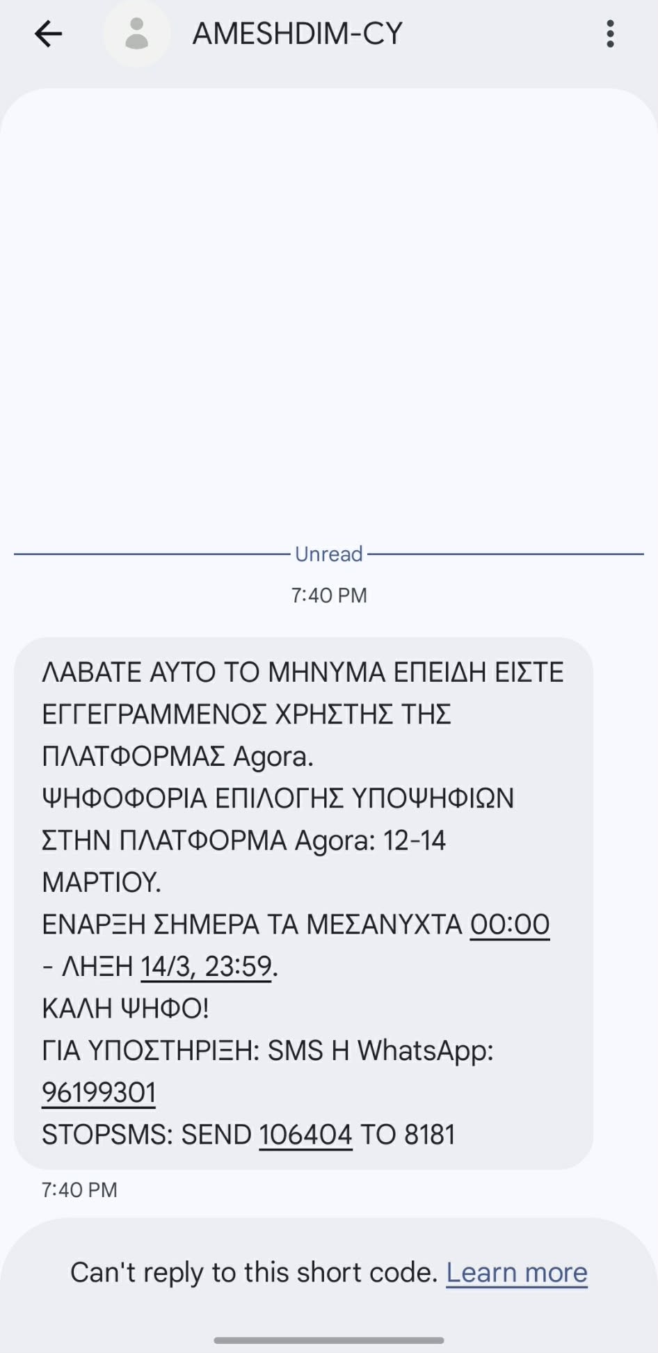 Η υπενθύμιση ήρθε από το βράδυ της Πέμπτης, με αποστολή SMS στους εγγεγραμμένους χρήστες της εφαρμογής, στο οποίο αναφέρεται ότι η ψηφοφορία που θα διαρκέσει μέχρι τις 23:59 της 14ης Μαρτίου, άρχισε στις 00:00 τα μεσάνυχτα.