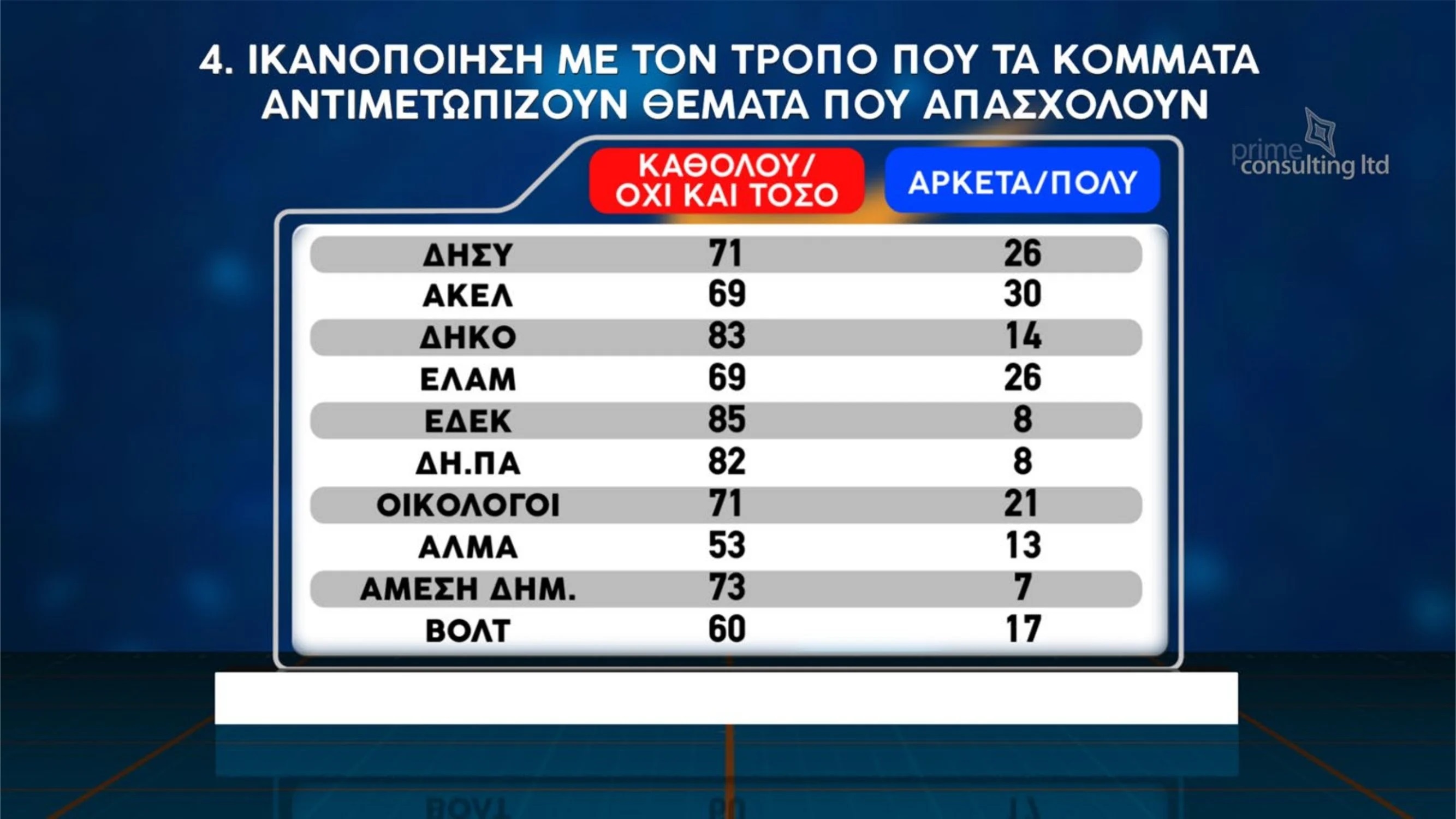 Ικανοποίηση από τον τρόπο που τα κόμματα αντιμετωπίζουν τα θέματα: