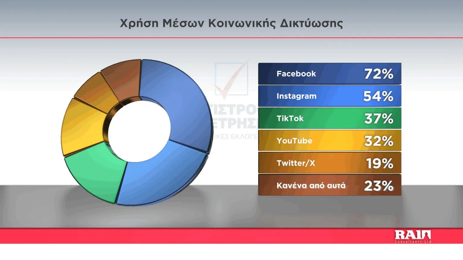 Τέλος, υψηλό παραμένει το ενδιαφέρον των πολιτών για την παρουσία κομμάτων και υποψηφίων στα μέσα κοινωνικής δικτύωσης. Το Facebook κυριαρχεί με 72%, ενώ η «Άμεση Δημοκρατία» εμφανίζεται πρώτη σε αναρτήσεις με 58%.