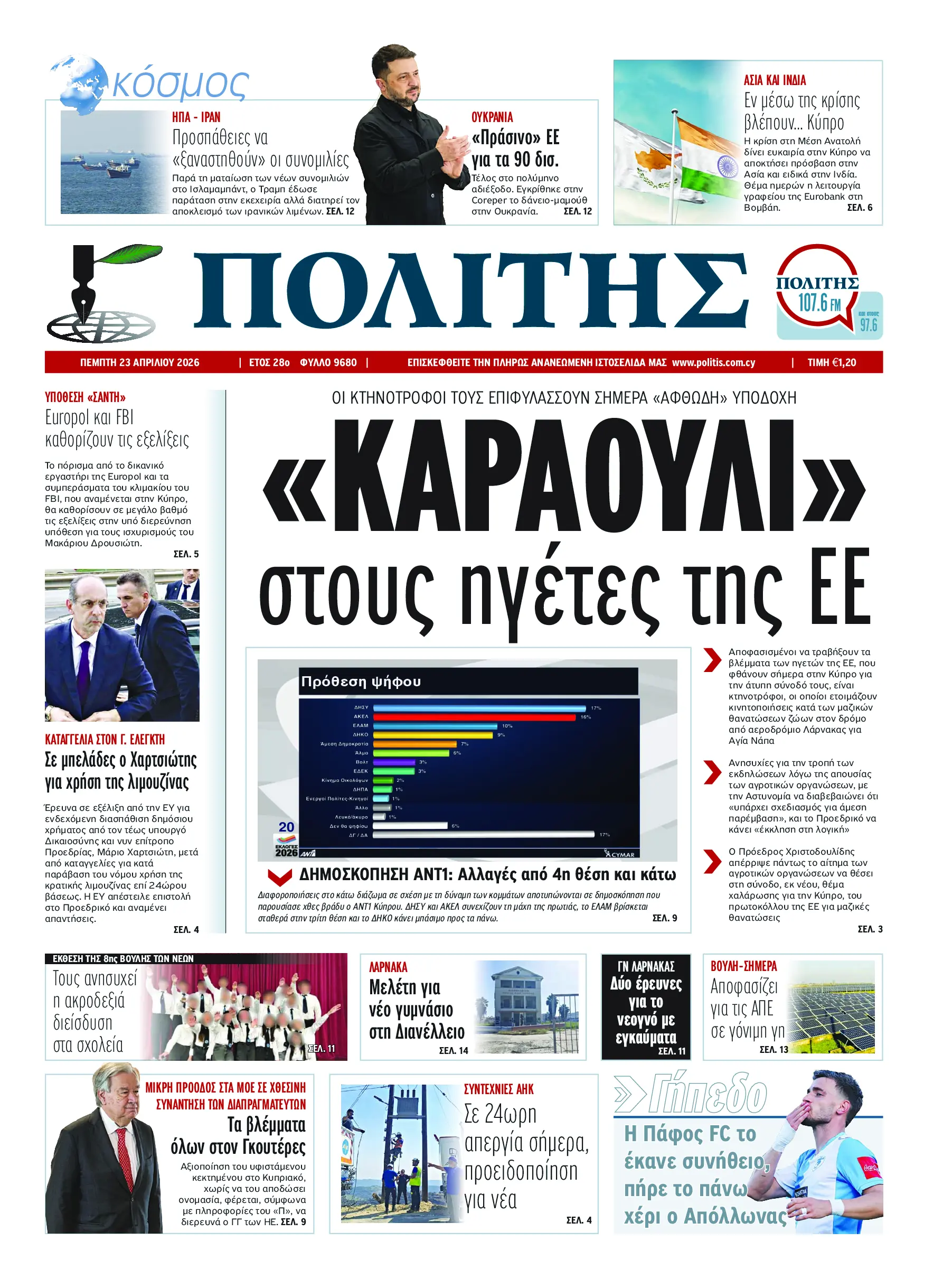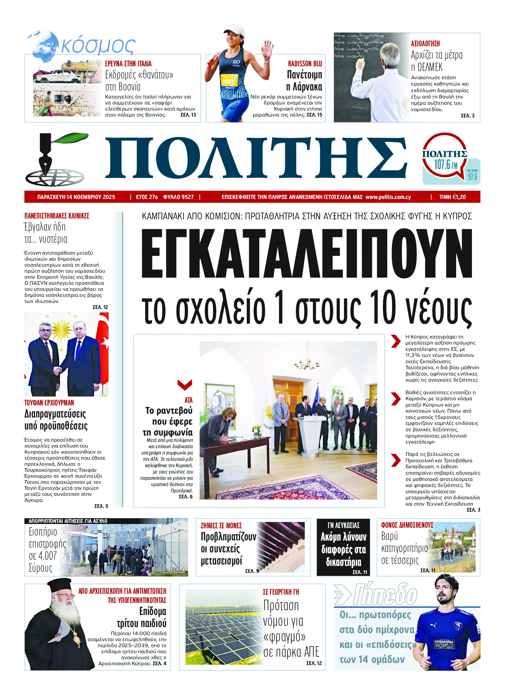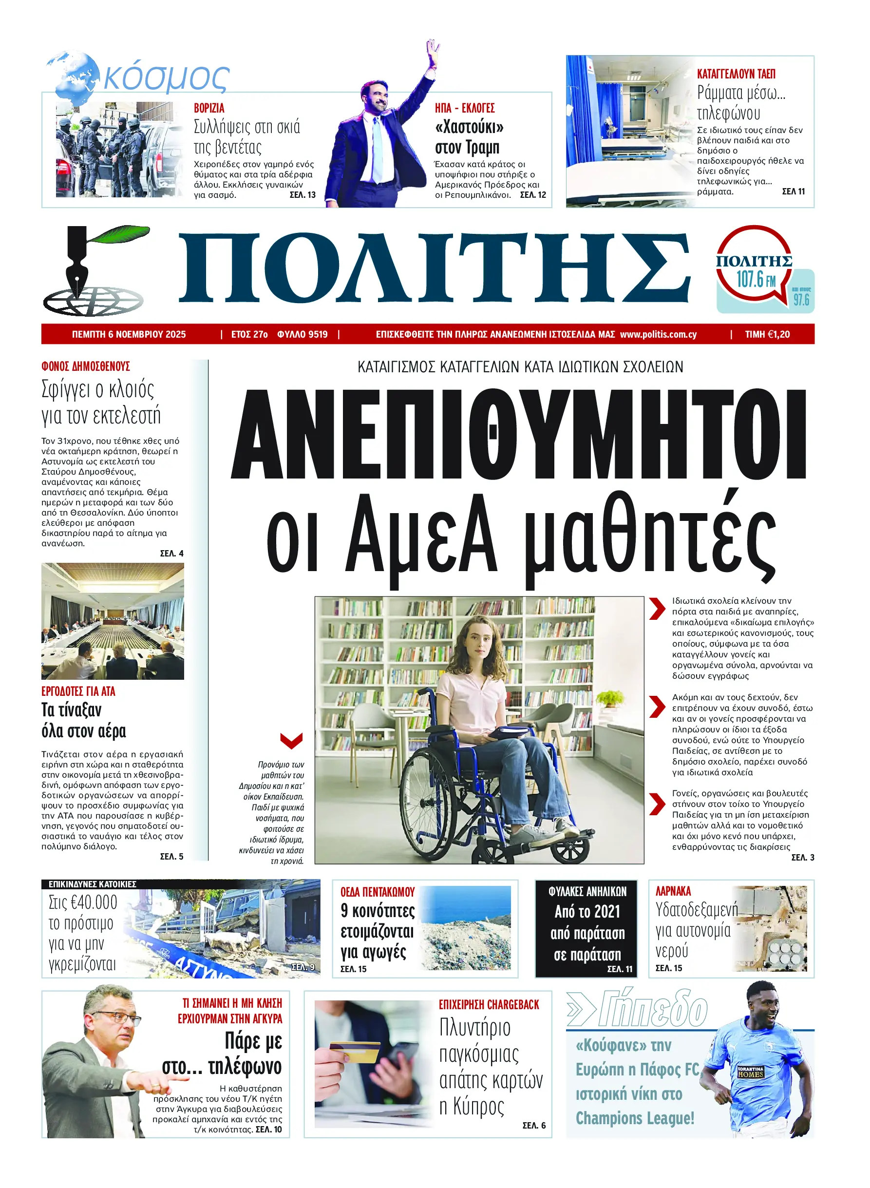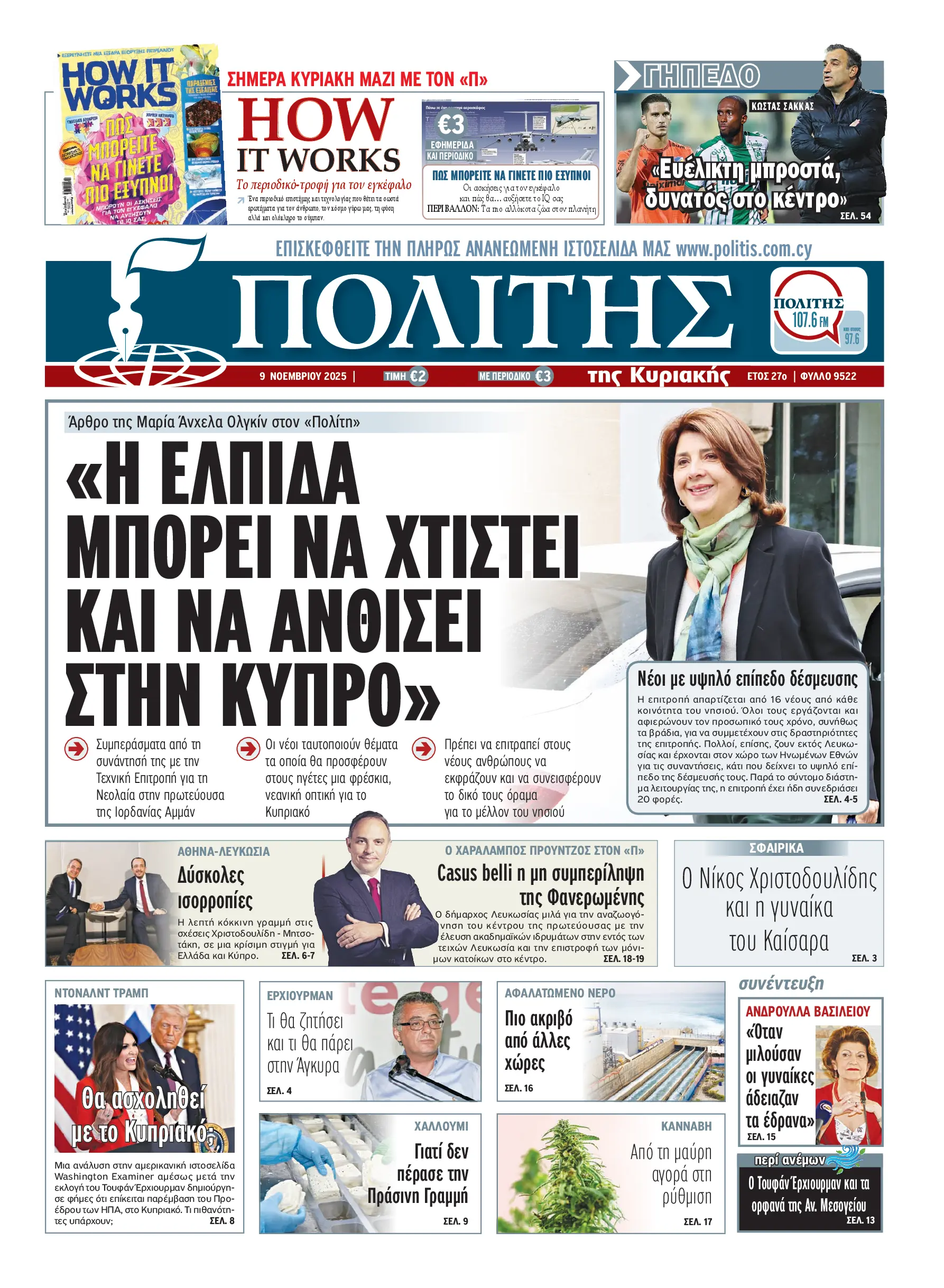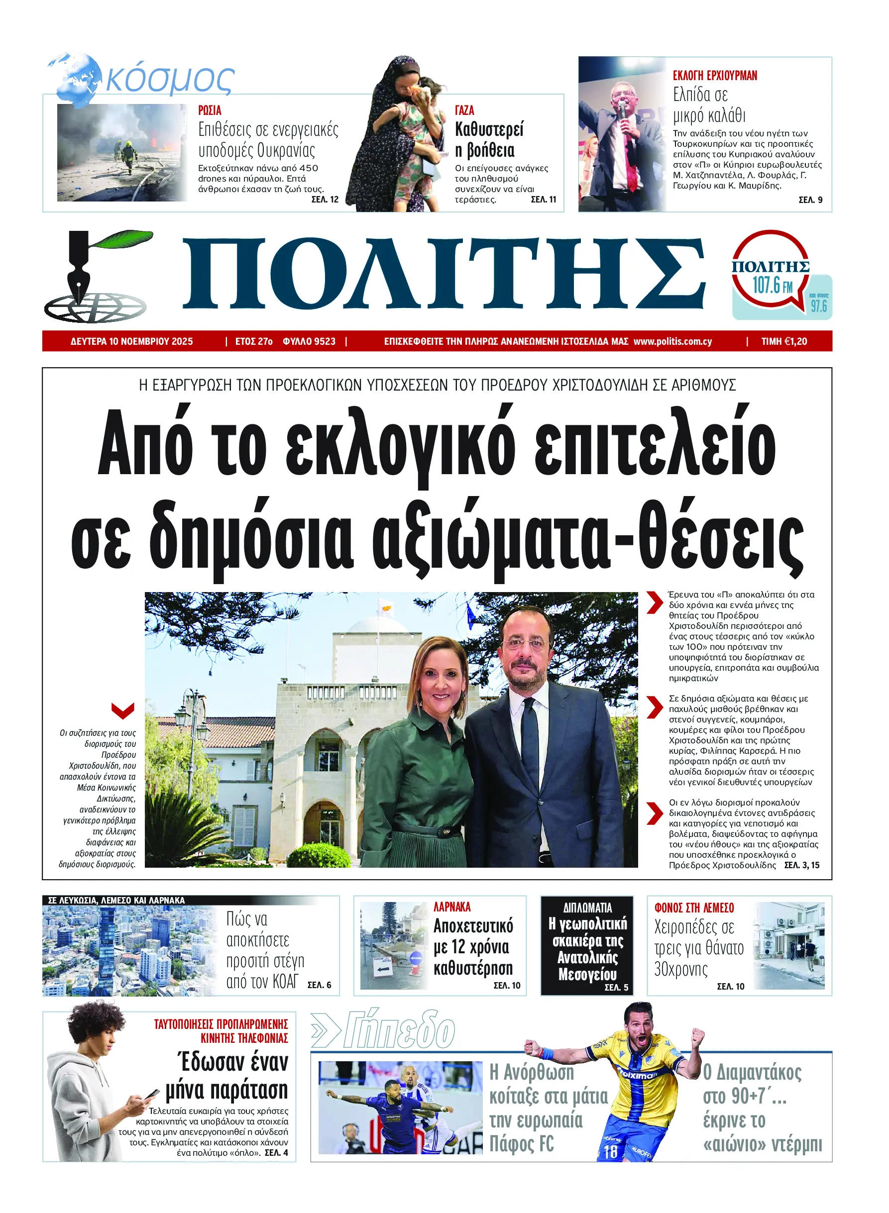 Σας καλωσορίζουμε στην Ψηφιακή Έκδοση της εφημερίδας «ΠΟΛΙΤΗΣ» σε ηλεκτρονική έκδοση στο διαδίκτυο. Η Ψηφιακή Έκδοση του «Π» διατηρεί τη μορφή και την αισθητική της εφημερίδας και είναι διαθέσιμη συνδρομητικά στην οθόνη σας, το κινητό και το tablet σας, από τις 05.00 το πρωί καθημερινά.